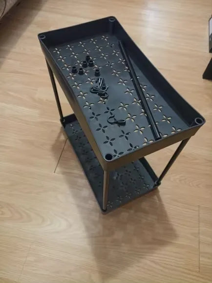 Der Organizer besteht aus hochwertigem ABS-Kunststoff und pulverbeschichtetem Schmiedeeisen, bekannt für Langlebigkeit und Rostbeständigkeit.